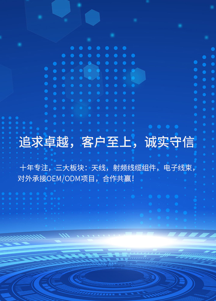About us昆山英淋科電子有限公司成立于2013年,是一家致力于全球互聯(lián)產(chǎn)品的專業(yè)廠商,公司在上海和臺(tái)北設(shè)有研發(fā)中心,并建有先進(jìn)的微波暗室,昆山和南陽(yáng)(河南)設(shè)有兩座制造工廠.公司下轄三大產(chǎn)品事業(yè)部:天線事業(yè)部,主要研發(fā)生產(chǎn)全系列各類天線,包含手機(jī)天線,無(wú)線路由器天線,NB天線,北斗天線,汽車天線,玻璃鋼天線,吸盤天線,F(xiàn)akra天線,5G天線,鐵氧體天線,RFID天線等,并研發(fā)定制各類天線。射頻事業(yè)部,主要研發(fā)生產(chǎn)射頻連接器,射頻線纜組件,射頻跳線,射頻測(cè)試線纜,通信基站、機(jī)柜射頻線纜等,包含0.81、1.13、1.37、RG174、RG178、RG179、RG316、RG58、RG141/142,以及半鋼半柔射頻線纜組件。電子線事業(yè)部,主要...